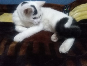 Bialy_ ogon czarny_ czarna plama na glowie bursztynowe oczy