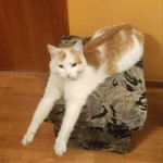 2 letni biało-rudy kot z puszystym ogonem. Bardzo ciekawski. Reaguje na kitku, kici kici i klaskanie.