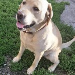 Ma na imię Atos. Ma 5 lat i na szyi czerwoną obrożę.