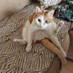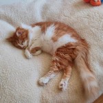rudy kot, młody, ok. 4 kg wagi, na brzuchu blizna po operacji i brak futra