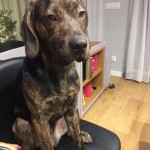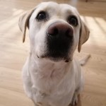 Fado labrador biszkoptowy, ma 7 lat, duży, na dolnej powiece prawego oka czarna brodawka widoczna na zdjęciu. Na głowie mała czarna blizna. Jest duży, utrzymany w zgrabnej wadze, dość dobrze umięśniony.