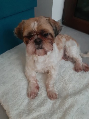 Pies rasy Shih Tzu, urodzony w 2019 roku. Umaszczenie: Tricolor.