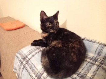 Barwa czarna (szylkret), sierść krótka, ruda krawatka, drobna budowa.