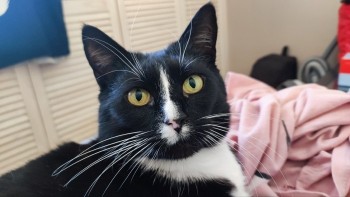 Czarno biała, białe łapki, brzuszek i wąsy.
