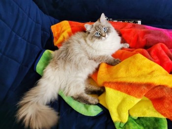 ZACZIPOWANY, biały z popielatym, łagodny, spokojny,