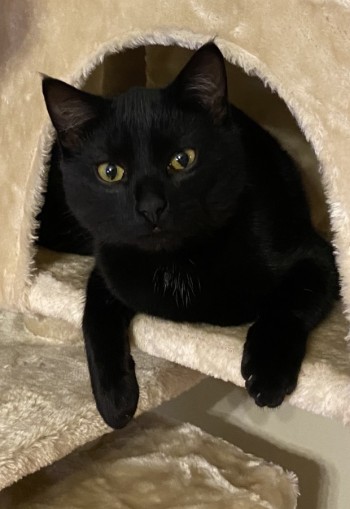 Czarny kot, żółte oczy, chudy, czarne wąsy. Kotek miał zranioną łapkę, bo został pogryziony przez innego kota. Był leczony przez tydzień antybiotykiem przez co cały czas był w domu. Został wypuszczony 24 lipca i do tej pory nie wrócił.