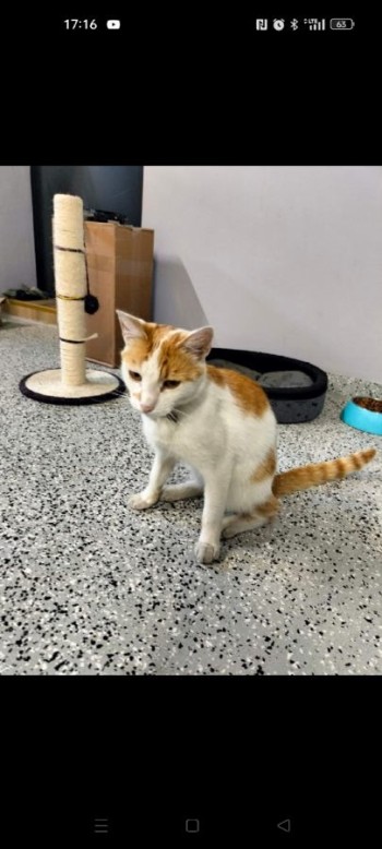 na szyi ma obrożę przeciwpchelną