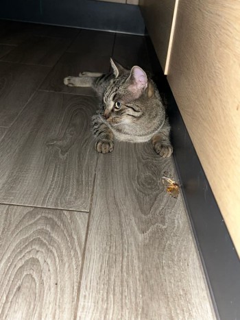 Bury mały kotek, reaguje na imie Zimmy, jest ze schroniska przez co jest dosyc płochliwy ale tez lgnie do człowieka