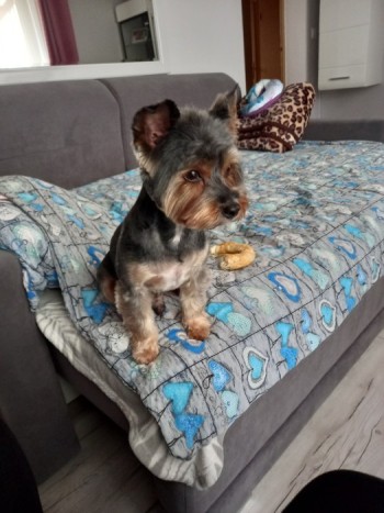 średniej wielkości, czarno-szary