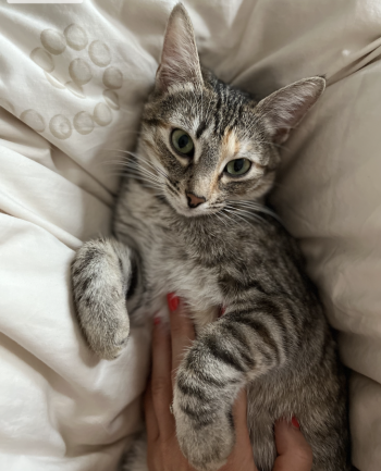 Ma 1 rok, średniej wielkości, szare paski, bardzo łagodna i miła.