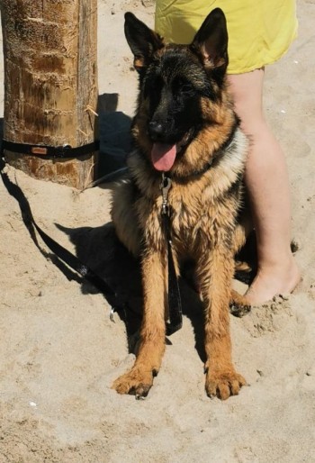 Fokus Owczarek Niemiecki, samiec, 9 miesięczny, czarny podpalany, krótkowłosy
