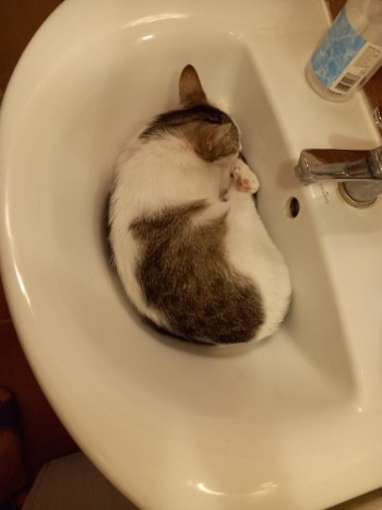 Kotka ma 2 lata, jest drobniutka. biała w bure łaty. Bardzo płochliwa i boi się ludzi, oczywiście do pierwszego, miłego poznania. :) Może błąkać się w okolicy parku przy ul. Podwale/Krasińskiego.