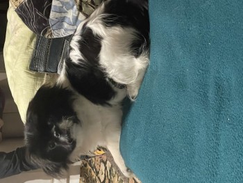 Piesek wani się Ringo i reaguje na imię. Czarno biała maść, młody