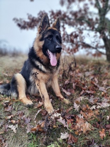 owczarek niemiecki długowłosy czarny podpalany