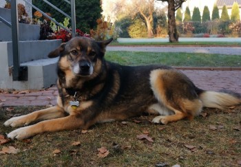 Bunia jest 9-letnią suczką średniej wielkości, spokojna i przyjazna. Ma umaszczenie w kolorze brązowym podpalanym. Jej znakiem szczególnym jest oklapnięte prawe ucho. Bunia BARDZO boi się wystrzałów i huku. Przyjmuje leki.