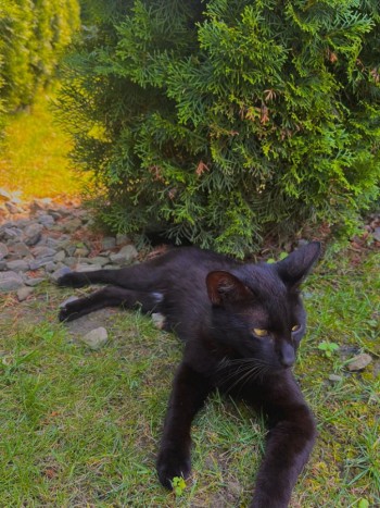 Kot reaguje na imię NYGUS. Jest bardzo przyjazny ma specyficzna końcówkę ogona „zawinięta” na brzuszku ma dość duża plamkę biała w kształcie „serca” i na szyi tez ma białe