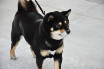 40 cm w kłębie, czarna podpalana, spiczaste uszy, zakręcony ogon, nazywa się Miwaku, obecnie niedosłyszy