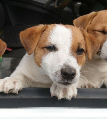 To mały biały z rudo białym pyszczkiem Jack Russel terrier wabi się Blanko