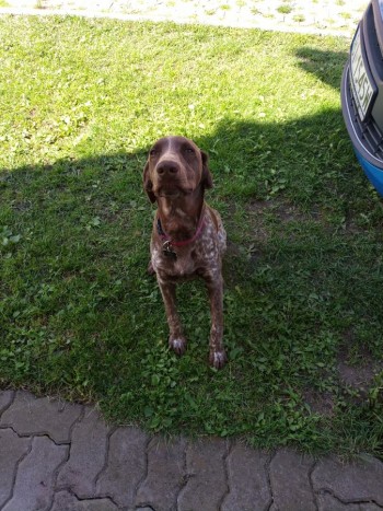 maść psa brązowy w białe kropki ,średniej wielkości piesio niestety jest bez obroży