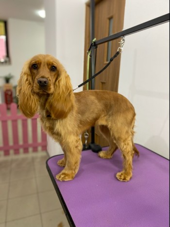 brązowy młody cocker spaniel, świeżo obcięty (krótkie włosy). Znalazca otrzyma wysoką nagrodę pieniężną