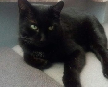 Czarny kot, samiec, lekki biały krawat wiek ok 5 lat