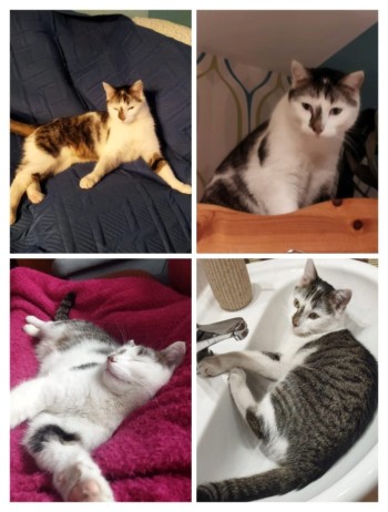 Biało szary dachowiec. Charakterystyczna łatka na lewej łapce. Kastrowany. Ufny i przyjazny.