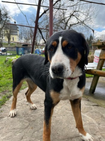 Szwajcarski Pies Pasterski ,suczka,bardzo nieufna do ludzi .