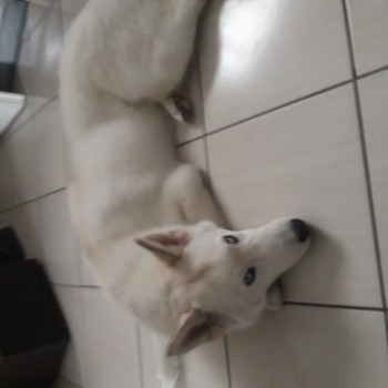 Biały husky z delikatnym odcieniem biszkoptowym ,w dniu zaginięcia miał niespełna 8 miesięcy bardzo ufny i przyjazny.Za wszystkie informacje w celu ustalenia miejsca pobytu z góry dziękuję.Nadal poszukiwany.Jeśli nie odbieram proszę o SMS.