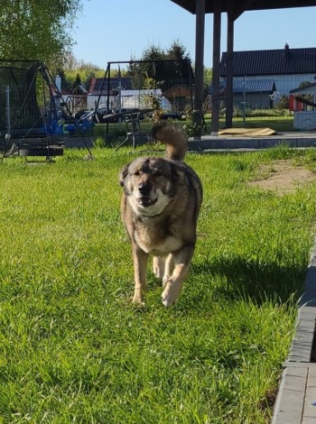 Imię - Lady, waży ok. 30 kg, ma obrożę z zawieszką z kodem QR,