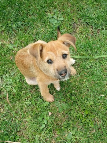 RUDA SUCZKA Z CHARAKTERYSTYCZNĄ NIEBIESKĄ OBROŻĄ Z CHUSTĄ TYPU VANDAMKA.