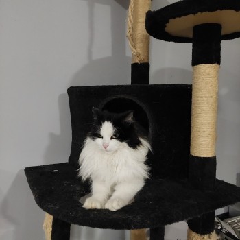 długowłosa trzyletnia kotka, płochliwa i nieufna, zawsze trzymała się domu