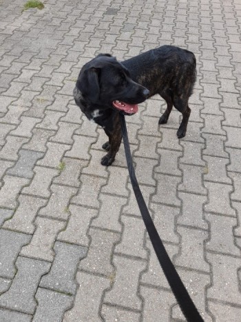ciemne pręgowane umaszczenie, biały ,krawat" na szyi