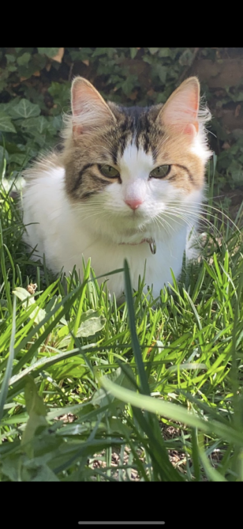 drobna mloda kotka, dlugi, delikatyny wlos. Typ norweski lesny. 3 kolorowa, przewaga koloru bialego i ciemnego brazu, nie ma zadnych charakterystycznych plamek. dlugi puszysty ogon. Dafne karmila nie dawno kocieta wiec moze miec powiekszone sutki, niewysterylizowana. dlugie wlosy wystaja z uszu