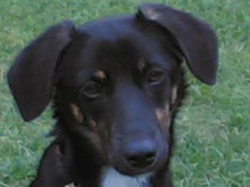 Piesek ma na imię Sonia, ma czarną sierść i miała na sobie szarą obrożę przeciw kleszczom.