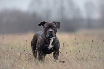 Ciemny, zaczerwienione oczka, wyglada groźnie ale jest bardzo przyjazny, ma obroże.