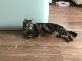 Zadbany samiec, wykastrowany, ma pogryzione paznokcie na przednich łapach