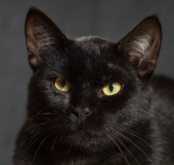 Merlin jest cały czarny, ma smukłą sylwetkę i charakterystyczny długi ogon. Jest zwinnym kotem, nieufnym w stosunku do obcych ludzi.