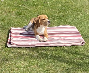 Znak szczególny: brązowo-biały pysk umaszczony symetrycznie wzdłuż nosa.