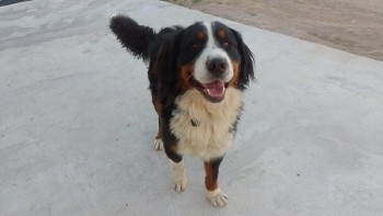 Pies rasy berneński pies pasterski. Bardzo towarzyski, potulny. Reaguje na imię Laki. Ma charakterystyczną białą prawą skarpetę.