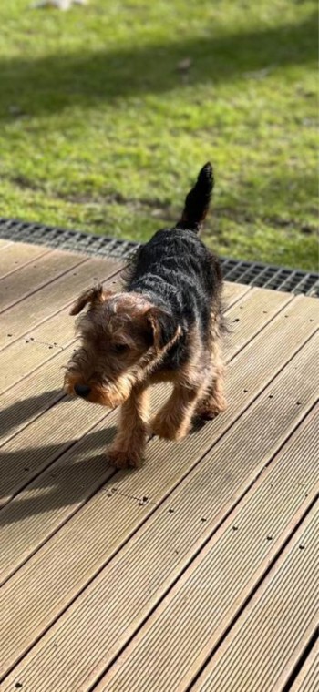 17tygodniowy szczeniak, terrier walijski, maść brązowo- czarna