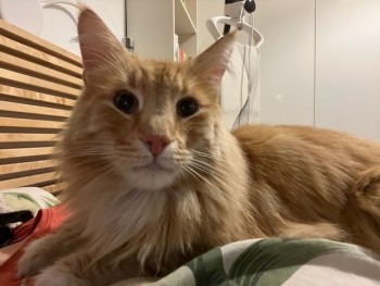 Ozyrys, łagodny, rudy pręgowany kociak.