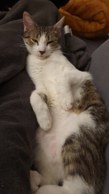 młody biało rudy kotek. szarym noskiem