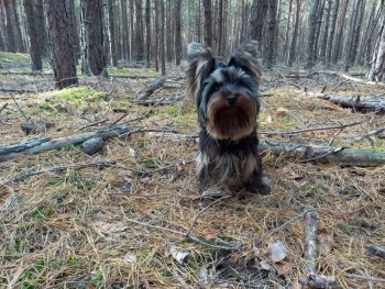 Nieobciety, nie miał na sobie obrozy, charakterystyczny krzywy ogon