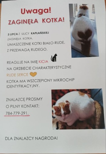 Data zaginięcia: 03/07/2024 Miejscowość: Szamotuły Telefon: +48784779291 Numer mikroczipa: 900164004012995 Nr ID szczepienia: Płeć: Samica Gatunek: Kot Rasa: europejska