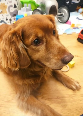 Kai/ Kajtek to rudy pies w typie spaniela, około 11 letni. Bardzo łagodny
