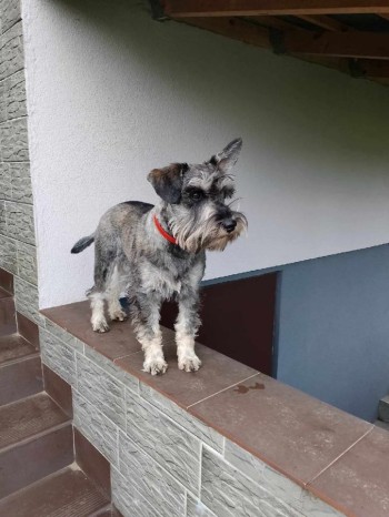 jedno ucho stojace drugie oklapniete, kolor pieprz i sol