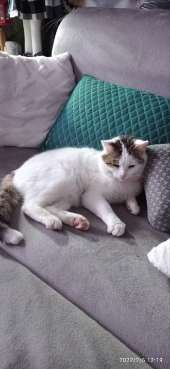Olaf- kastrowany kocurek,biały w bure łaty na głowie i jednym boku,ogon bury z białą końcówką . Olafek nie potrafi miałczeć wydaje tylko zachrypnięty głos dlatego proszę okolicznych mieszkańców o sprawdzenie szopek, garaży i piwnic może ktoś przez przypadek go gdzieś zamknął. Zaangażowanym z góry bardzo dziękuję za pomoc.