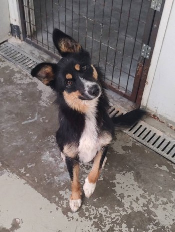 Ma 2-3 lata jest średniej wielkości w kolorze czarno brązowym podpalanym z charakterystyczną łatką na karku.