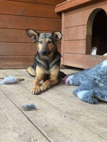 KASIA - około roczna, średnia suczka, rudo czarna, dopiero adoptowana ze schroniska. Może mieć na sobie niebieskie szelki, jest płochliwa i lękliwa, nie zna okolicy. Może podejść do psa. Prosimy nie gonić tylko dzwonić na numery 606 654 625 lub 509 104 718.