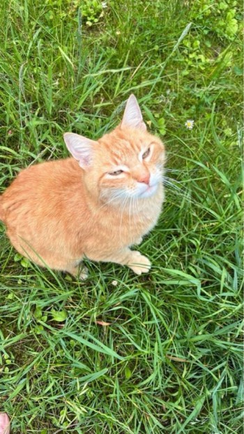 Kotek o imieniu Leon, o rudym umaszczeniu, oswojony, zaczipowany, szczupłej budowy ciała , bardzo przyjazny , wykastrowany